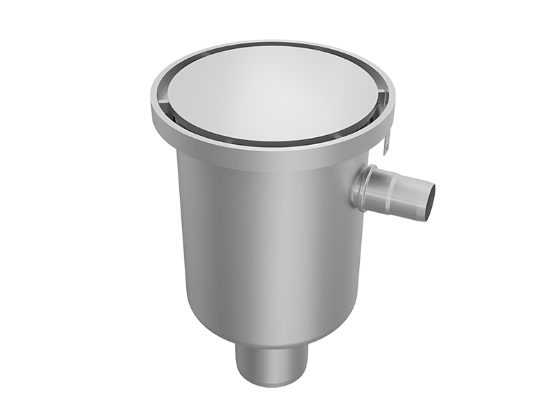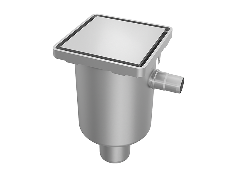 Produkte ⟩ Industrie-Bodeneinlauf – 94-S, pneumatisch ⟩ Pneumatisch verschließbarer Industrie-Bodeneinlauf Modell 94-S DIN 4102 | DIN 18095 | EN 179 5.20 Abdeckungsvarianten 5.30 Schlammfangvarianten 5.40 Geruchsverschlussvarianten 5.50 Flanschvarianten